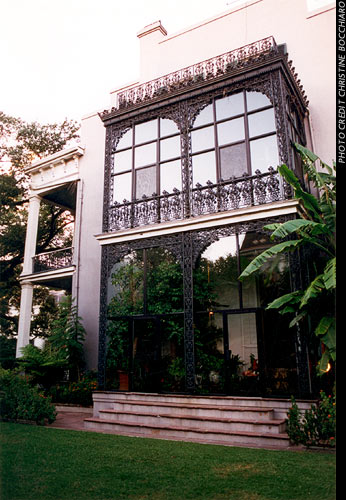 This house is also the inspiration for Mayfair Manor, the Garden District home of Anne's Mayfair Witches. Pictured here are the swimming pool and the side porch. Both of these locations figure prominently in Mayfair Family history. In Anne's Mayfair Family, the swimming pool in the backyard garden was installed by Stella Mayfair in the wild years of her youth. It is the pool that Michael Curry is found floating in on Christmas morning, 1989, after suffering a heart attack while fighting Lasher.
